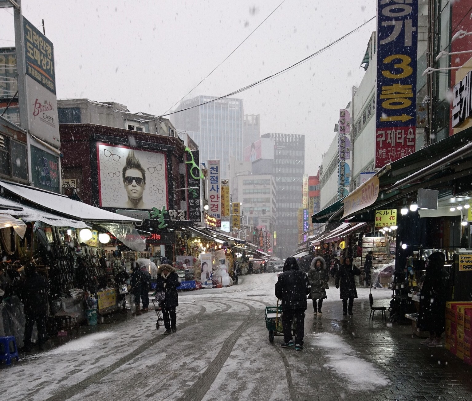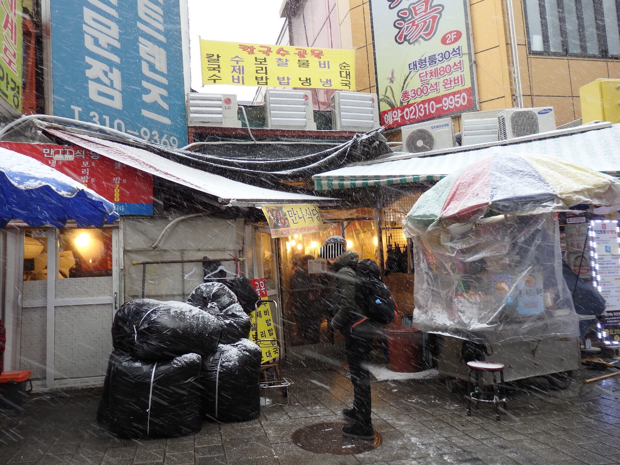 韓国2日目、起床すると天気は雪!