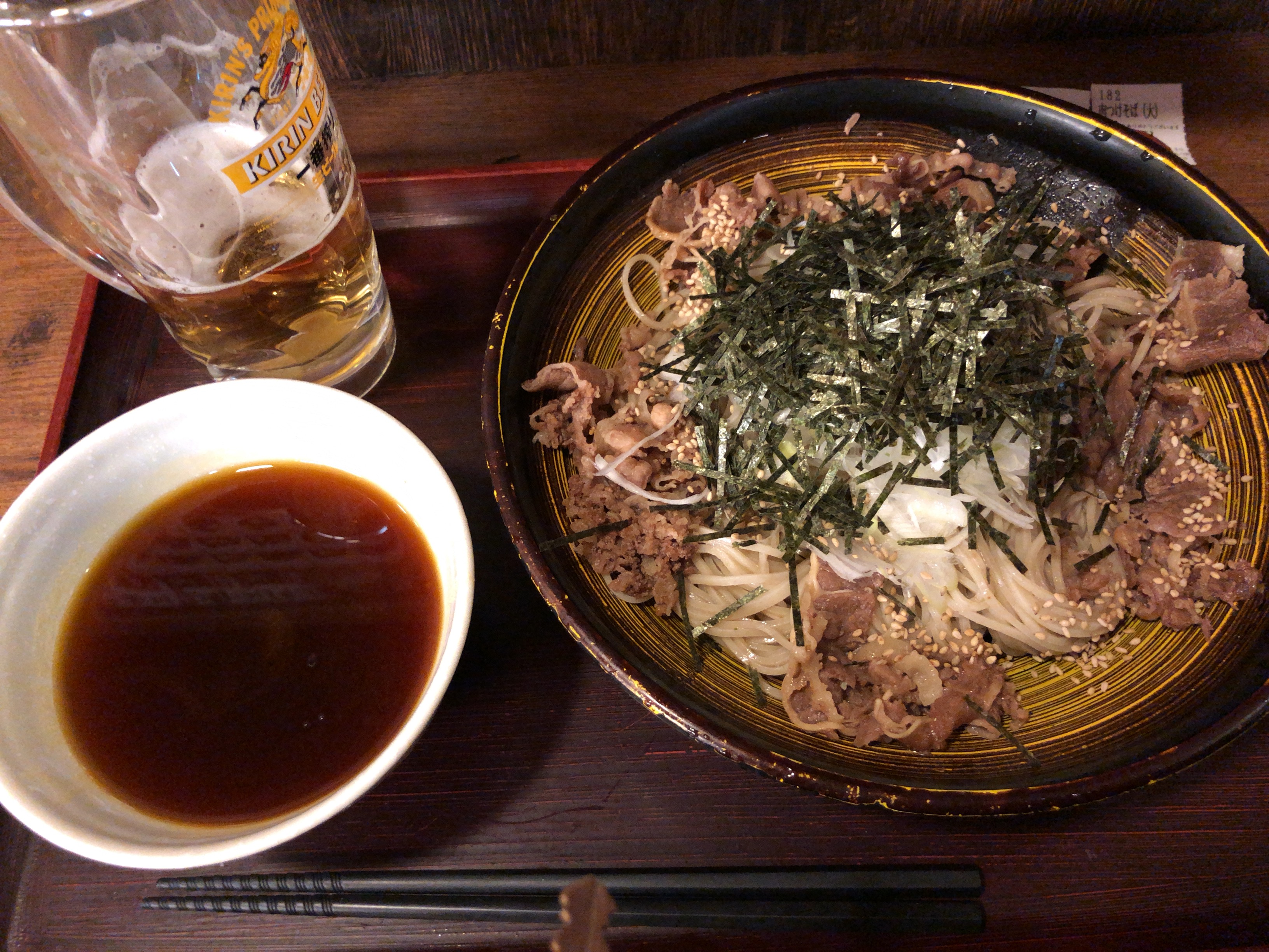 しっかりしめられた蕎麦の上に、たっぷりの牛肉。