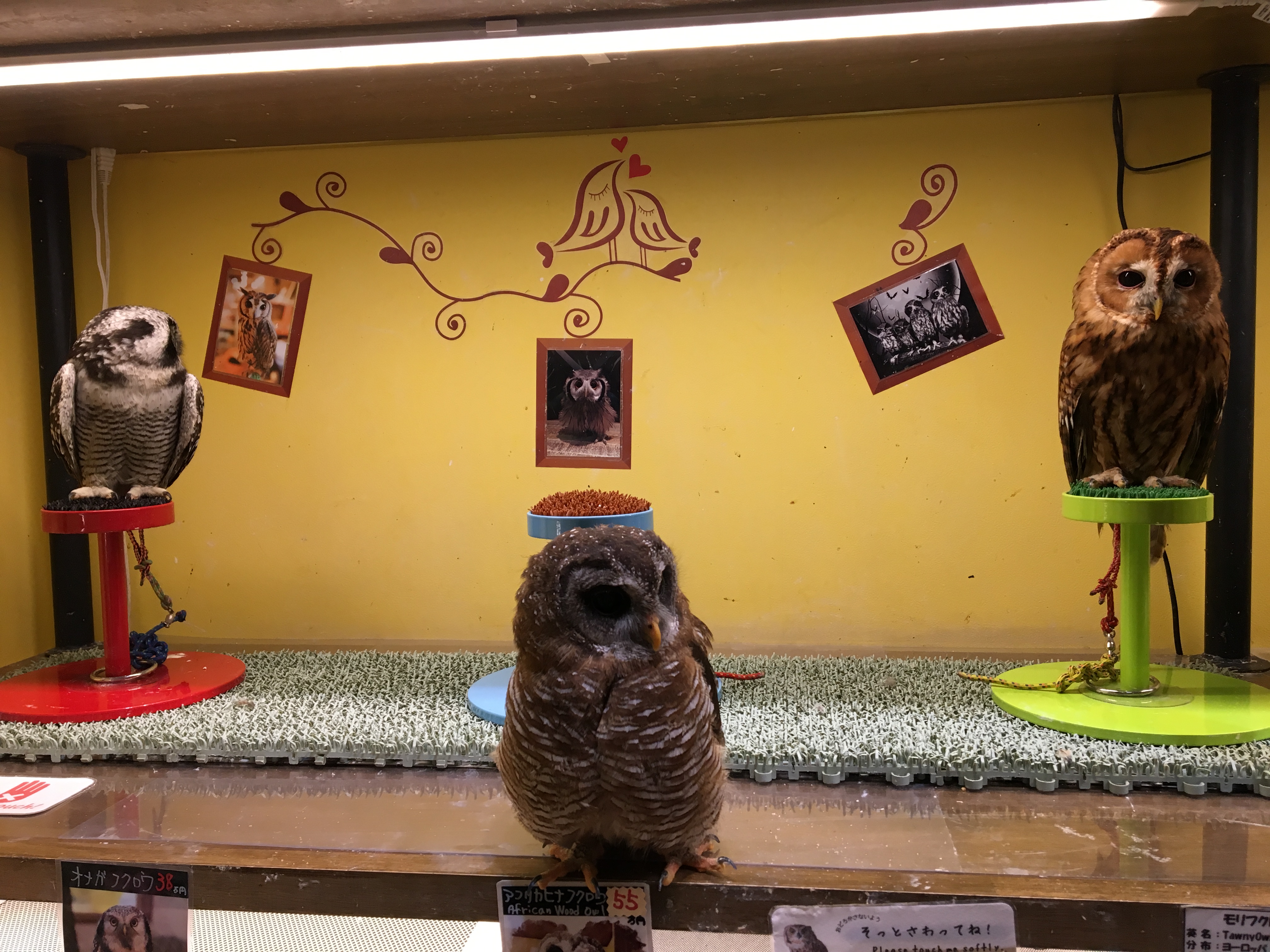 鳥のいるカフェのスタッフさんに聞いたお話しだと、谷中本店はふくろうがメイン。